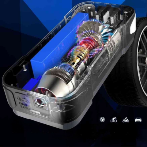 Denne intelligente og bærbare starter genopliver dit køretøj på få sekunder. Den integrerer også en luftkompressor til at pumpe dine dæk op, uanset hvor du er. Designet til sikkerhed og praktisk anvendelse kombinerer den kraft, alsidighed og pålidelighed i én enhed.